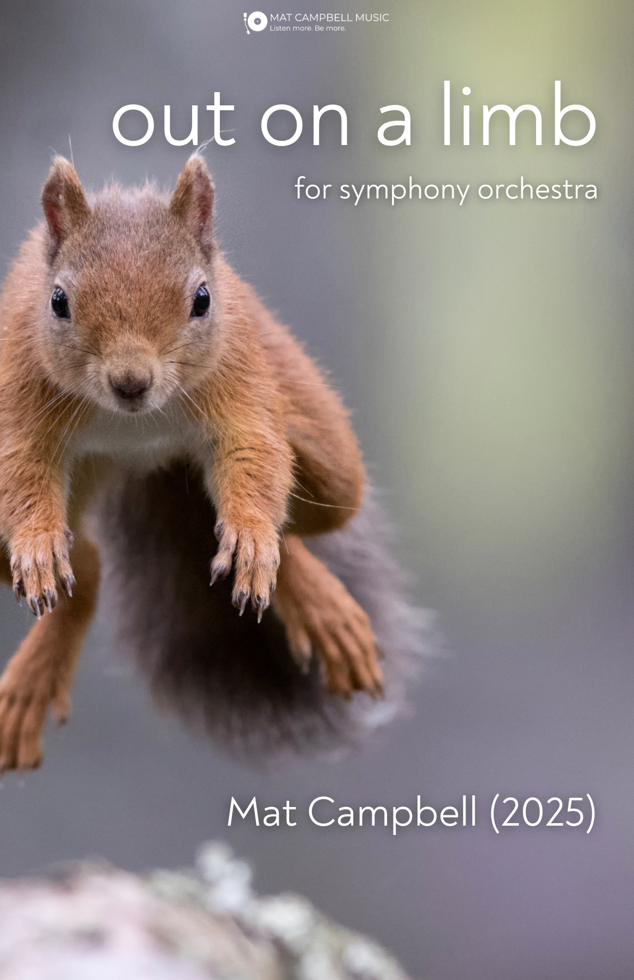Created in collaboration with conductor Peter Bement and the students of the Huntington Beach High School Symphony Orchestra, this symphony orchestra version of out on a limb, including optional saxophones, depicts an imaginary off-brand Scrat from the Ice Age movie franchise in his journey of getting that one last acorn to survive the upcoming ice age.